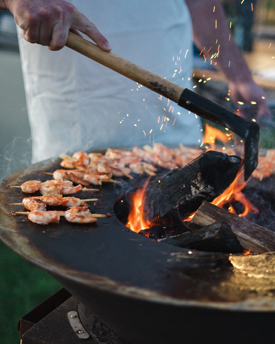 Notre brasero au feu de bois apporte chaleur, spectacle et gourmandise à vos événements.